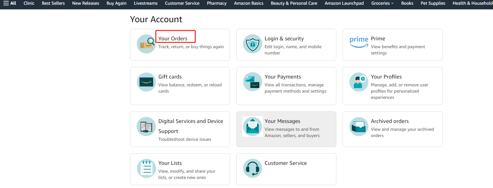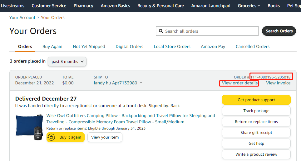 Step 1: Login your Amazon account and click “Your Order” in Account & Lists Page: